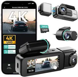 BOTSLAB 3 Channel Dash Cam 4K with 128GB Card, 3.18" Touch Screen, Voice Control, 4K Dash Cam Front and Rear Inside Loop Recording, 5.8GHz WiFi, GPS, Night Vision, WDR, Parking Mode