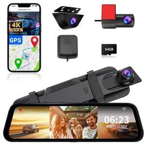 4 Channel Dash Cam,360 Degree, Front and Rear Inside Dash Cam for Cars, APP Control, Built-in WiFi,8 IR Night Vision, Parking Mode, Loop Recording, Fre 64G SD Card, Voice Control,3K+1080P x3