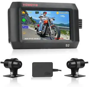 VSYSTO S2 Pro Dual Channel Motorcycle Dash Cam, Front and Rear 1080P 30fps Waterproof Lens, Supports 5GHz Wi-Fi Parking Mode GPS 512GB Max