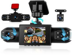 SIXTOP 4 Channel 360 Dash Cam Front Rear Inside & Left Right 4*1080P FHD Dash Camera for Cars with 64GB Card WiFi & App, Built-in Night Vision, G-Sensor, Loop Recording. 24H Parking Mode, Wide Angle