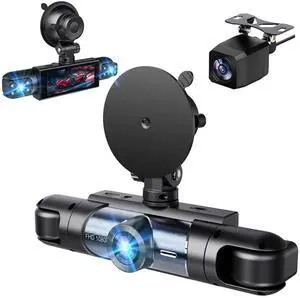 Dash Cam Front and Rear Inside,Dashcam for Cars with APP Control,Car Camera Driving Recorder with 64G Card IR Night Vision,Loop Recording,3.16 Inch IPS Screen,Parking Mode (Front+Inside+Rear)
