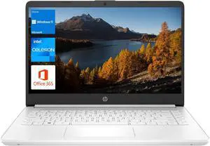 HP Portable Laptop, Student and Business, 14" HD Display, Intel Quad-Core N4120, 16GB DDR4 RAM, 64GB eMMC, 1 Year Office 365, Webcam, SD Card Reader, HDMI, Wi-Fi, Windows 11 Home, White, KKE Mousepad