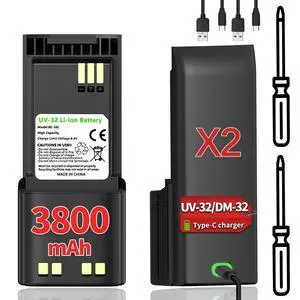 BAOFENG DM32 Battery 3800mAh USB-C Charging Extended High Capacity Rechargeable Li-ion Battery with USB-C Charging Cable Compatible DM-32 UV32 Walkie Talkie Battery Accessories(2Pack)