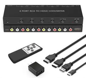 2Port RCA/AV to HDMI Converter Adapter for WII, N64, Xbox, PS1/2/3,DVD Players etc (2AV in-1 HDMI Out)