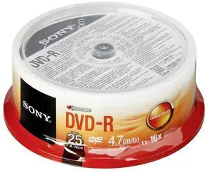 Sony 25DMR47SP 16x DVD-R 4.7GB Recordable DVD Media - 25 Pack Spindle