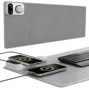 YUECHCASES Heated Desk Pad, 10s Fast Heating Desk Mat with Integrated 15W Wireless Charging for Phone/Earbuds, 31.5" x 13" Waterproof Mouse Pad, 2-6H Auto-Stop, Precision 1-Degree Temp Control