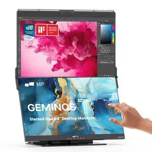 Mobile Pixels Geminos T (2 x 24 inch) Dual Stacked Computer Monitor with All-inclusive Workstation, 65W USB-C Charging Touchscreen, 1080P Webcam&Speakers, USB-A/USB-C/HDMI, Ergo Design (2 Monitors)