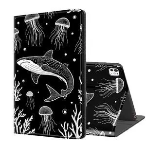 ETLKJVBL for iPad Pro 11 Inch Case 2024, Auto Sleep/Wake, Whale Shark and Jellyfish Multiple Angles Viewing Folio Stand Case for iPad Pro 11 Inch 2024 Tablet