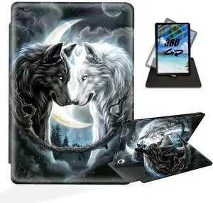 ETLKJVBL for iPad 10th Generation Case, 360 Degree Rotating Stand Cover Multi Angle Viewing, Auto Sleep/Wake, Black White Wolf Leather Case for iPad (A16) 11th Generation 11 Inch 2025