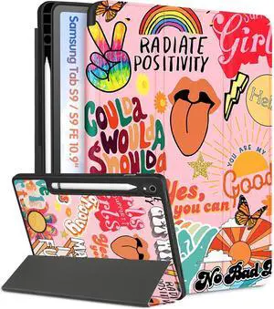 Wazzasoft for Samsung Galaxy Tab S9 FE 5G Case - Aesthetic Design Folio Cover with Pencil Holder, Unique Quotes