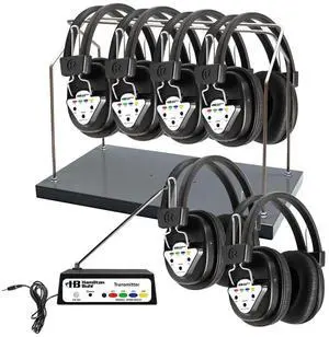 HamiltonBuhl Wireless 6 Person Listening Center with Multi-Frequency Transmitter, Wireless Headphones and Rack, Orange, (HH/W906-MULTI)