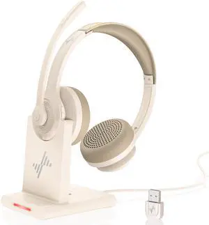 Wireless Headset with AI Noise Cancelling Microphone Bluetooth Headset - Bluetooth V5.2 Headphones with USB Dongle, Charging Base & Mic Mute for Computer/Laptop/PC/iPhone/Android/Cell Phones-White