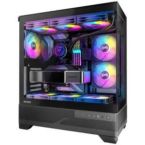 Okinos Aqua 7, Pre-Installed 6 120mm PWM ARGB Fan, ATX Mid Tower PC Case, Computer case with Panoramic View Tempered Glass Front & Side Panel, Type C Port, Gaming PC Case, Black