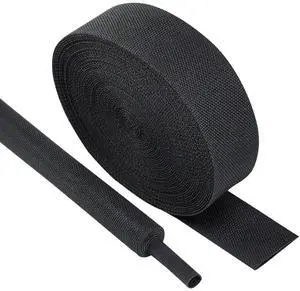 BuyUneed Heat Shrink Braided Sleeving, 2:1 Ratio Shrinkable Fabric Tubing Sleeve Abrasion Protection Cable Wire Sheath (1-1/8"-15ft)
