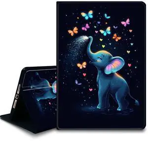 Bxgolkgd Tablet Case for iPad 10.2 Inch (9th/8th/7th Gen,2021/2020/2019),Shockproof Stand Cover with Heat Dissipation,Auto Wake/Sleep Function,Cute Elephant and Butterfly