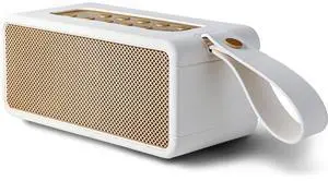 AT&T Essentials Retro 80W Bluetooth Speaker, IPX6 Waterproof, Bluetooth 5.3, LED Light Modes, Bass & Treble Control, 12H Battery, USB-C Charging, Outdoor & Indoor Use, Home Audio System - Cream