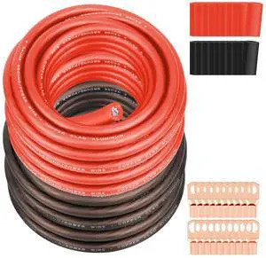 4 Gauge Wire (25FT Each, Black/Red) SGANGCAR True Spec Power Ground Wire Cable with 20 Lugs, 20 Heat Shrink Wrap,Copper Clad Aluminum CCA,for Power/Auto,Amplifier,Car Audio Speaker,Ground Cable