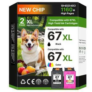 67XL Black Ink Cartridge (2-Pack) Compatible for HP Ink 67 High Yield- Printer Ink for HP67XL HP67 Work with DeskJet 2855e 2852e 2734e 2755e 4155e 2700 2700e 2755 2752 Envy 6055e 6000 6055 6400 Series