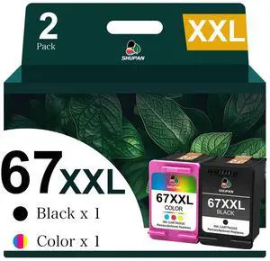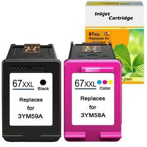 67XXL Ink Cartridges Combo Pack Replacement for HP 67 XL 67 Ink Work for Envy 6000 6055 6055e 6400e 6455e 6458e Envy Pro 6455 6458 (1 Black, 1 Color)