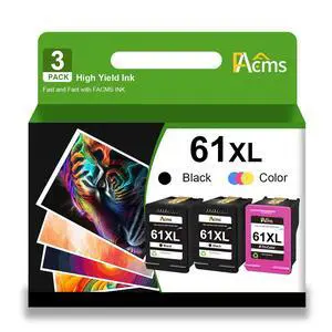 FACMS 3 Pack 61XL Ink Cartridges Balck and Color Combo Pack Replacement for HP 61XL 61 XL Ink Cartridges Work with Envy 4500 5530 5535 Deskjet 2540 1010 Officejet 4632 4634 (2 Black,1 Tri-Color)