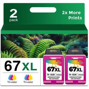 Ubinki 67XL Color Ink Cartridge Replacement for HP 67XL 67 XL HP67 HP67XL (Tricolor 2-Pack) for 2700 4155e 2755e 2734e 4100 2700e 4100e 6400 2752 2752e 4152e 6455e 6055e 2742e 6000 6055 6458e Printer