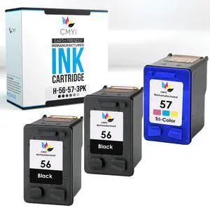 CMYi 56 57 Replacement Combo Pack Ink Cartridge for HP OfficeJet 4110, 4110v, 4110xi, 4215, 4215v, 4215xi, 4219, 4255, 5500 Series, 5505, 5508, 5510, 5510v, 5510xi, 5515 Printers (2 Black, 1 Color)