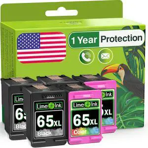 Limeink Remanufactured Ink Cartridge Replacement for HP 65 Ink cartridges Black/Color Combo Pack for HP Envy 5055 cartridges deskjet 3755 for HP65 Cartridges 65XL XL 5P