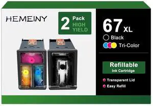 HEMEINY 67XL Refillable Ink Cartridges Compatible with HP Envy 6000 6052 6055 6058 6075 6400 Pro 6452 6455 6458 Deskjet 1255 2732 2752 2755 4140 4152 4155 4158 Printers