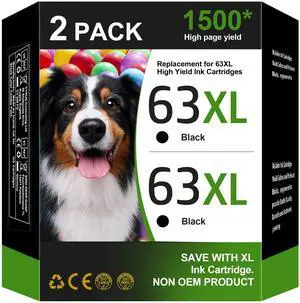 63XL Black Ink Cartridge (2-Black) Replacement for HP Ink 63 63XL HP63 XL Combo Pack Works with HP DeskJet 1112, 2130, 3630 Series; Envy 4510, 4520 Series; OfficeJet 3830, 4650, 5200 Series ^^ F6U64AN