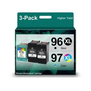 96/97 Ink Cartridge Black and Color Combo Pack (3 Pack) Remanufactured Replacement for HP 96 97 for Deskjet 6940 5940 6840 6980 6988 Photosmart 8050 Officejet 7310 7410 7210 (2 Black 1 Tri-Color)