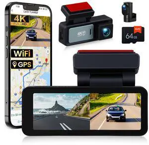 SIXTOP 4K Dash Cam Front and Rear, 4K+1080P Dual Dash Camera for Cars with 64G Card, GPS, WiFi & App Control 3.16 IPS Screen, Night Vision, G-Sensor, Loop Recording & 24H Parking Monitor, Wide Angle