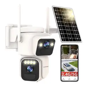 Luovisee Solar Security Cameras Outdoor Wireless,2.4G/5G WiFi Cameras for Home Security, Dual Lens PTZ Motion Zone,2-Way Audio,Night Vision,Weatherproof,SD/Cloud Storage
