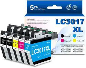 WINDLEAO LC3017XL High Yield Ink Cartridges 5 Pack (Includes 2 Black 1 Cyan, 1 Magenta, 1 Yellow) Replacement for Brother LC3017 LC3017 XL Ink for MFC-J5330DW MFC-J6530DW MFC-J6930DW Printer