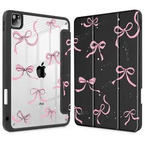 May Chen for iPad Pro 11 inch M2 4th Generation 2022, iPad Pro 11 3rd/2nd/1st Gen, Case with Transparent Shockproof Back Cover [Built-in Pencil Holder, Auto Sleep/Wake, Pink Bows