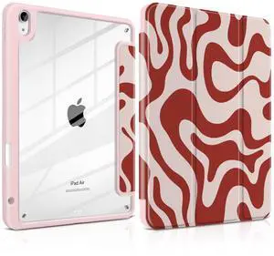 TWOLSKOO Case for iPad Air 11-inch (M4 2026 / M3 2025 / M2 2024), Clear Acrylic Back with TPU Bumper, Pencil Holder, Trifold Stand, Auto Sleep/Wake, Red Waves