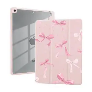 AdorableWhimsy Cute Bow Ribbon Case for iPad (A16) 11th Generation 2025 11" / iPad 10th Gen 2022 10.9" with Pencil Holder Trifold Stand Pink Leather Girly Cover Clear Back Shell Auto Wake/Sleep