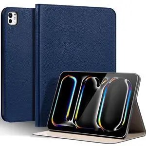 Thryxop Genuine Leather Case for iPad Pro 11 inch Case (M5/M4) 2025/2024 ^^ Slim Protective Cover with Adjustable Stand, Auto Wake/Sleep, Premium Leather ^^ Blue
