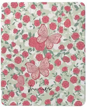Pink Roses and Butterflies Case Compatible with IPad 9th 8th 7th Generation 10.9 Inch 2021/2019/2018,Funny Cover with Trifold Stand + Pencil Holder for Boys Girls,iPad 10.9in 2022