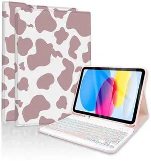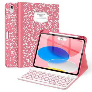 Supveco Keyboard Case for iPad (A16) 11th/10th Generation 11&10.9 Inch with Pencil Holder,7 Colors Backlit Wireless Detachable Folio Keyboard Cover for iPad 11th/10th Gen 2025/2022-Watermelon