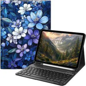 GYSYZJDH Keyboard Case for iPad 11th (A16, 2025) and iPad 10th Generation 10.9 inch (2022), Slim Folio Cover with Detachable Bluetooth Keyboard & Kickstand, Protective Blue Floral Art Design Design