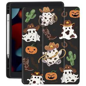 CozyNestCY Cute Cowboy Ghost Case for 10.9 Inch Ipad 10Th Western Retro Cover Aesthetic Halloween Shell with Clear Transparent Back Auto Sleep/Wake Shockproof with Pencil Holder(Halloween Girl)