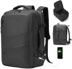 SUIKIHUM Travel Carry on Backpack, 18.9" Flight Approved, Expandable Weekender Bag with Waterproof USB A/C Port, Equivalent to 18" Suitcase, Black