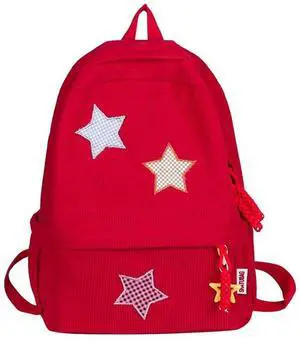 MININAI Corduroy Star Backpack Cute Y2k Preppy Backpack Aesthetic College Laptop Backpack Y2k Accessories for Women (Red)