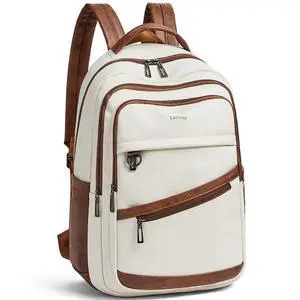 LATMAP 43L Backpack for Women Men - Vegan Leather Backpack Purse Travel Carry-on Bag College Bookbag Work fits 17" Laptop, Beige