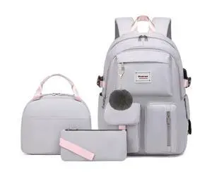 Wadirum Fashion School Backpack Set for Girl Roomy Women Laptop Backpack Grey