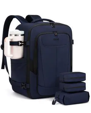 LOVEVOOK Travel Backpack for Men, 40L Carry on Backpack Flight Approved with 3 Packing Cubes, Extra Large Personal Item Bag Fit 17.3 inch Laptop for Business Trip Weekender, Waterproof Daypack, Blue