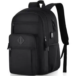 ZUBOND Unisex Black Backpack for School, Lightweight Boys Girls Backpack with USB Port Fits 15.6 Inch Notebook, Water Bottle Pocket - Ideal for Teens, College Students, Adults