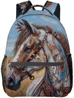 VANZEV Native American Horse Backpack Travel Backpacks Laptop Rucksack,School Bookbag for Women Kids Boys Girls,Western Back Pack Accessories Bags,Ideal Gifts for Work, Outdoor Adventures