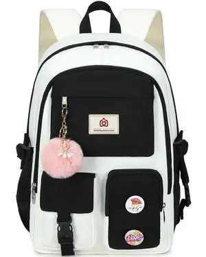 Hidds Laptop Backpacks 15.6 Inch School Bag Elementary Middle High College Backpack Cute Bookbags Anti Theft Travel Back Pack Casual Daypack Kids Book Bag for Teens Girls Women Students-Black Beige