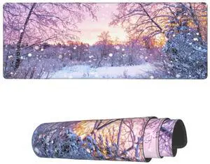 AoHanan Large Mouse Pad Beautiful Winter Landscape Gaming Mousepad Extended Keyboard Mouse Mat Desk Pad Non-Slip Stitched Edge Rubber Table Mat,31.5 X 11.8 Inch